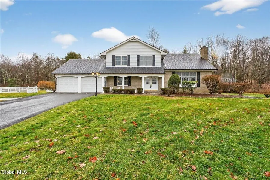Look no further for your perfect private escape! Situated on 2.06-acres, this spacious 3-bedroom, 2. bath home is an entertainer's dream. Own your own private party retreat featuring an enclosed Gunite pool room, complete with 2-bathrooms, a sauna, hot tub, and a bar with built-in beer taps. Continue the party outside on the slate patio, surrounded by attractive exterior hardscaping. The main house offers a custom bar area, perfect for full-service entertaining. The bathrooms have high-end finishes and fixtures. A separate, heated carriage house offers potential for studio or retreat or flex space, plus an attached 2-car garage.
