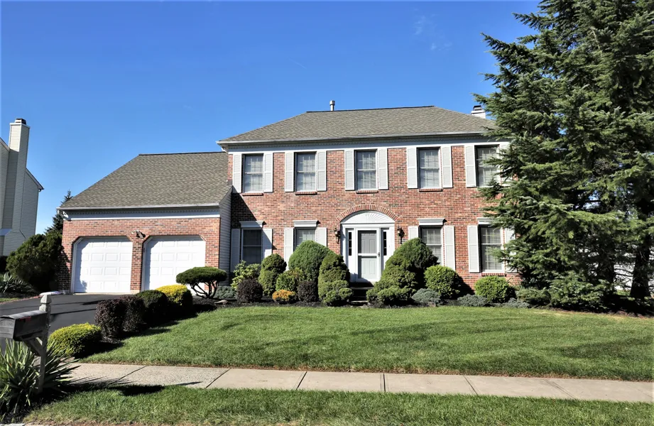 Beautiful, brick front 5 bedroom, 2.5 bath NORTHHAMPTON model home nestled on a sizable lot in the highly sought-after community Timber Ponds located in South Brunswick Township. Featuring a wonderful floor plan that is suitable for entertaining, family gatherings, or to enjoy a quiet night at home. This home has been meticulously well maintained and features: bright and airy 2 story foyer; formal dining and living rooms with crown and chair moldings; eat in kitchen with island, lots of cabinets, stainless steel gas range, built in microwave, large pantry and delightful, sunny breakfast area with a ceilings fan and access to the back patio; cozy family room with wood burning fireplace with custom wood mantle; laundry room with utility sink and shelving; a convenient powder room and a 1st floor bedroom completes the main floor. The second level is just impressive and features: a master bedroom with 2 WIC closets and 2 standard closets, large sitting area with ceiling fan and vaulted ceilings and a full bath with a double sink vanity and shower/tub; 3 additional bedrooms share a hall bath with double sink vanity and tub/shower. Additional features: full basement; 2 car garage and driveway parking; large, private backyard with patio; professional landscaping; beautiful hardwood flooring through entire home; 9ft ceilings on first and second floors; roof is only 5 years old; 2-year-old air conditioner compressor. Conveniently located near blue ribbon South Brunswick Schools, restaurants, shopping, banks and more! This is a must-see home with a wonderful location!