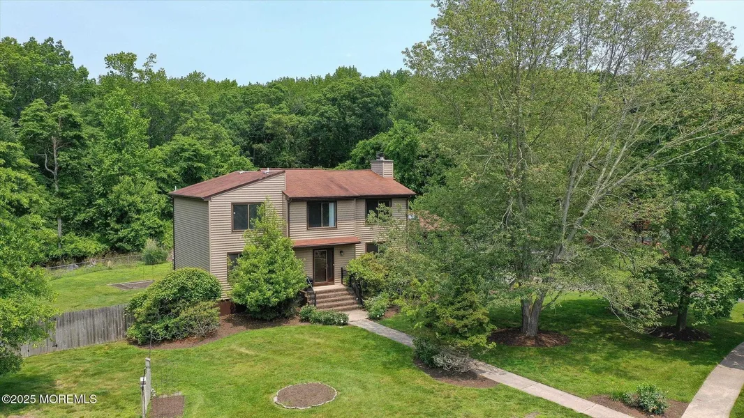 Welcome to Wayside Woods. The home is located on one of the largest lots in the neighborhood, backs to the woods, has a large driveway leading to the two car garage, & newly fenced backyard. The large back yard has two sheds, gas heated inground pool w/ replaced liner, newer deck, & irrigation system. Inside has plenty of space main level features two large living rooms each with a fireplace, dining room, Large eat in kitchen, laundry room, and half bath. Upstairs has four very spacious bedrooms, full bath with a double vanity, and a primary suite with full bath & walk in closet. The home also has a huge walk out basement over 1,000 sq ft of living space for hosting, space/storage, and large windows. Come and make it your own.