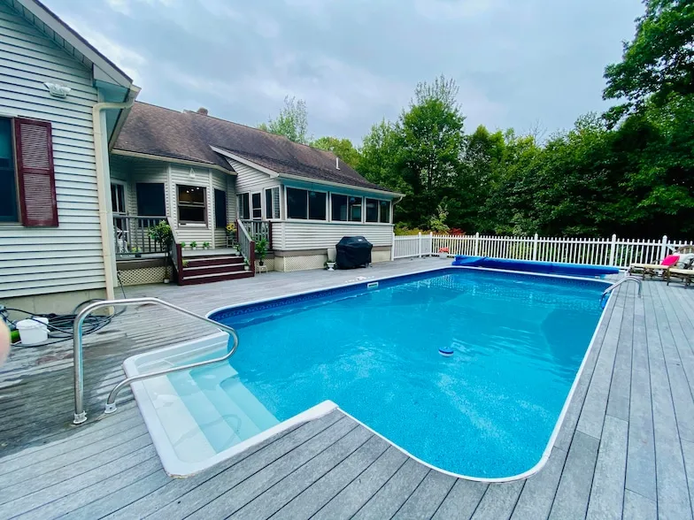 Looking for a beautifully designed 3,000+ sq ft, four bedroom home in an amazing, secluded location? Imagine the privacy of nearly 6 acres of land in a wonderful neighborhood of exceptional homes on a private road, yet the convenience of being minutes to all Augusta offers for shopping, restaurants, and Mid Maine Medical Center! Spacious with tall ceilings, the interior of this beautiful home flows incredibly well and continues into the outside with a 16' x 32' in-ground pool surrounded by a generous amount of decking for lounging and dining within the fenced in area. The home boasts an impressive foyer leading into the formal dining/sitting room or forward into the living room. From the dining room, the large central kitchen with granite top center island and breakfast area overlooks the inviting pool. A special bonus to the kitchen is the large pantry room with it's own window! From the breakfast area, circle around to the living room which opens up to the large three season glassed in sunroom. Off in its own wing and with it's own pool views, is the luxurious primary bedroom suite featuring a spacious walk-in closet and beautiful bathroom complete with a whirlpool tub and shower. Two additional bedrooms with shared full bathroom and also a half bath with washer/dryer complete the first floor living spaces. Downstairs, garden level, is the fourth bedroom with spacious walk-in closet and also a family room. Double doors walk out to the side yard. Another set of double doors lead into the basement area just begging for finishing into a game room or movie theater room, still leaving plenty of space for storage. Only 2.5 miles to Maine General Hospital, I95, with choices of golf courses nearby, less than an hour to the coast and 20 minutes to several lake areas makes this home easy access to so many recreational activities.