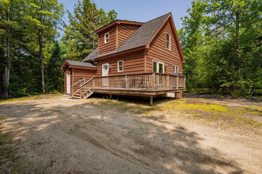 The mountains are calling! This cute-as-a-button chalet is truly turnkey and ready for you. It's the perfect size for a park-and-play, lock-and-leave lifestyle. Featuring 3 bedrooms (including one on the first floor) and 2 full bathrooms, this home offers a bright, open-concept layout with the kitchen, dining, and living areas seamlessly connected. A slider off the living area leads directly to the deck for easy indoor-outdoor living. The first-floor bathroom conveniently includes laundry. Upstairs, you'll find two additional bedrooms and a full bath. The unfinished daylight basement offers excellent potential- think game room, bunk space, or added living area. Set on a private lot with a firepit, the home also comes equipped with a state-of-the-art hot tub and an on-demand Generac generator for peace of mind. To top it off, the property includes a deeded right of way to the Androscoggin River, giving you the perfect launching point for four-season adventure. All of this just minutes from Bethel Village and cross-country skiing, and only 15 minutes to world-class skiing and golf at Sunday River.