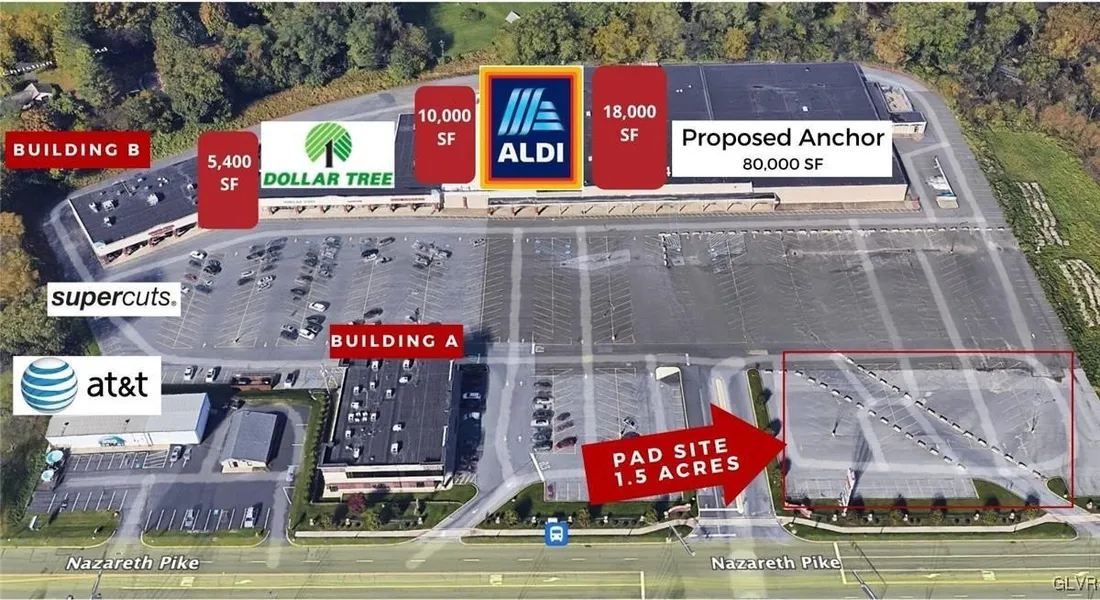 Bethlehem Plaza is a well positioned shopping center on Rt. 191 just south of the Rt. 22 exit. Bethlehem Plaza shares a full movement signalized intersection with Bethlehem Square (Giant Foods, Wal-Mart, Home Depot) directly across the street. 5,400 SF, 10,000 SF Retail Space, and 98,000 SF Anchor space available for immediate lease. Great line up of local, regional and national tenants! Join Dollar Tree, Hibachi Grill and Buffet, SuperCuts, AT&T, Good Shepherd Rehabilitation, Mariner Financial, Ideal Image, CosmetINK, China King, Salon Bronze Tanning Salon and more great Tenants!!!