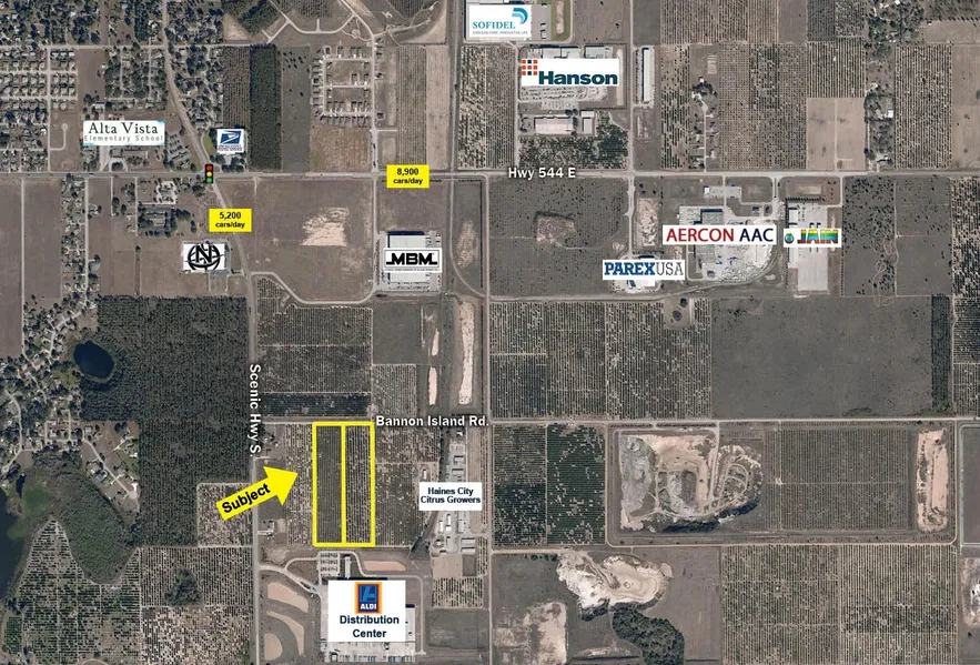 This Haines City property offers 19.76 +/- SF of vacant industrial land with a population of almost 5.5 million within 90 minutes. Highest and best uses include light and medium industrial, and commercial trade among others. This site has an allowable Gross Floor Area between 200,000 to 1,000,000 SF with 5 acres or more of usable site area. The property is in close proximity to the Walmart, Aldis, and Sherwin Williams distribution centers.