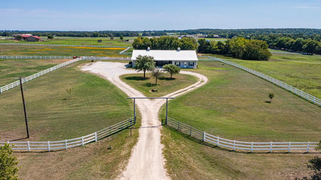 Another great equine property adjoins the Horseman's Ranch Subdivision North of Callisburg, TX. this property has 20 acres with a 1696 square foot barndominium with 2 stalls, tack and wash stall along with covered parking. This home is cozy with 3 bedroom 2 full baths, updates too. the setting is beautiful with white vinyl fencing with several cross fences and a nice hay field. The stalls have Dutch doors with individual runs. there is another metal building with lean-to's on each side, it could easily accommodate stalls, but is currently as storage and a run in shed. This property has an easement to access the Horseman's Ranch and the HOA is optional. The HR has many community amenities including use of the 120x250 NRS indoor Arena set up for roping, RV parking, community center and miles of scenic riding trails.