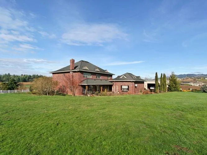 Elegant classic masterpiece on Nearly 20 acres next to vineyard/winery! Gorgeous Estate Property with main residence and 2 agricultural buildings with endless possibilities. Soak in all that Oregons Premiere Wine Country has to offer from this statuesque brick Georgian-style 2 story home. Enjoy stunning Valley and Mountain views while relaxing on the covered patio surrounded by breathtaking acreage. Inside you will find a well appointed floor plan complete with 5 spacious bedrooms and 3.5 baths. The Gourmet Entertainers Kitchen is sure to delight any cook with Oak floors and cabinets, Granite counters, Bosch appliances and double oven. Bring the beauty of the outdoors in with this homes abundance of windows. Formal living room with wall of windows and gas fireplace. Family room with cozy wood burning brick fireplace and floor to ceiling windows. Relaxing master suite with solid Oak built-in desk and shelving, double sink and walk-in closet. Main level bedroom with Handicapped accessible bathroom. All you could ever need or want! Call for an amenity list and property information today!