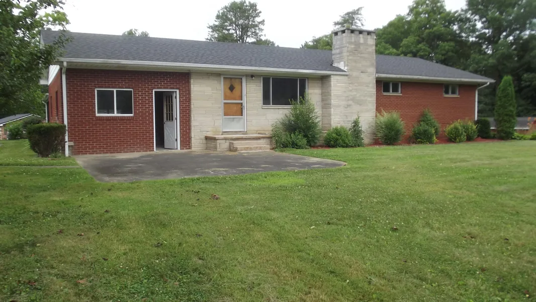 Spacious Brick Ranch Home with walk out basement situated on 1.25 acre lot with wooded cliff top views and numerous fruit trees!