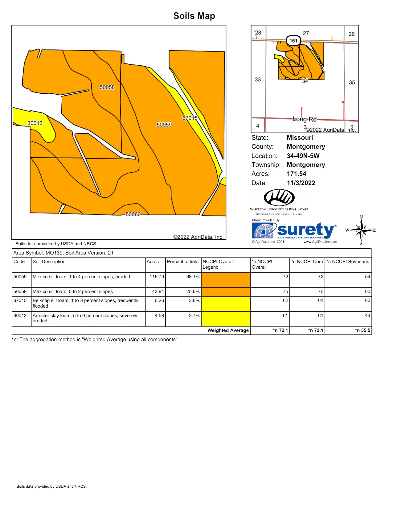 Selling with Open Tenancy for 2023! Add to your operation or investment portfolio. Excellent farm with 172 acres of highly fertile tillable! Comprised of mainly Mexico Silt Loam, 1-4% slopes, blacktop frontage on Hwy 161. Located just east of Montgomery City.