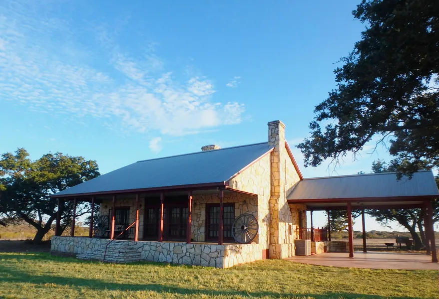 This 190.27 acre ranch is located in NW Llano County, just south of Smoothing Iron Mountain. This ranch has good access with over a quarter of a mile of county road frontage on Co. Rd. 405, while there are no easements through the ranch. The terrain is gently rolling with two tributaries of San Fernando Creek. There is an excellent balance of live oak and post oak trees, along with some mesquite trees and a limited amount of brush. There is a 20 acre field area that could easily be converted to improved grasses or food plots for wildlife. The ranch is cross fenced into two main pastures and three smaller traps. There is a nice set of working pens. The main house is located on the highest point on the ranch. There are two large covered porches, front and back, that take advantage of the great views. The limestone home is a modern 3/2, Texas style country home with a large attached carport. The living room and dining area are divided by a large stone fireplace and each have stained bead board, 14 high ceilings. The roomy Mbdrm also has a fireplace. Both bathrooms have claw-foot bath tubs with showers. The cabin is a 1,408 sq. ft. , 2/3 modular home with an additional den/living room of conventional construction. The cabin has central heating and air-conditioning, plus additional storage rooms. Near the cabin is a large covered equipment shed. The many fine amenities of this ranch can only be fully appreciated by an onsite inspection, so come and take a look!