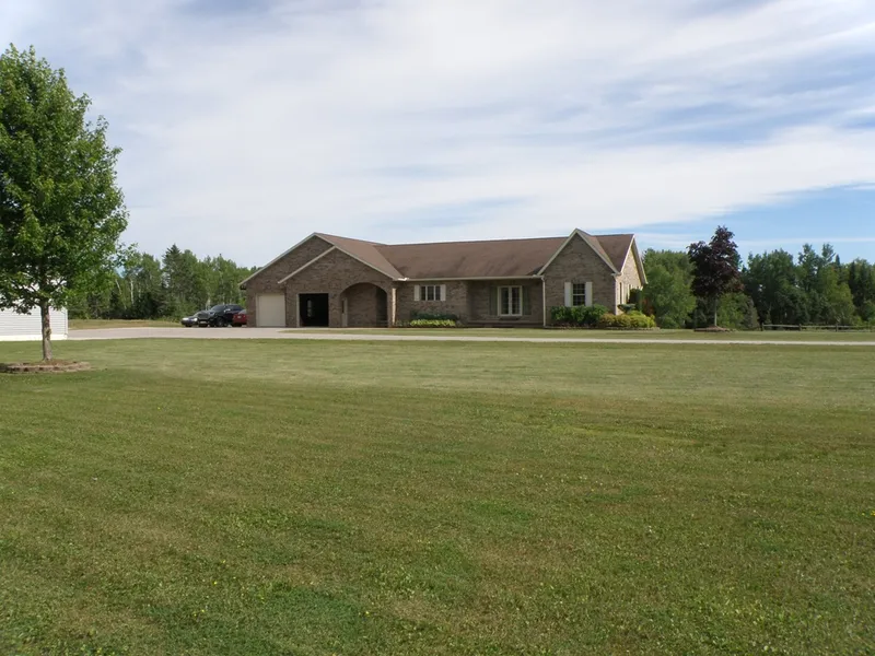 This gorgeous custom built 5BDR/4BTH brick home sits atop a hill on 10 acres that overlooks the Pine River offering a peaceful view of distant fields with opportunities to see a menagerie of wildlife. A graceful curved driveway accents the meticulously cared for and roomy landscaped yard of perennials and mature trees. The interior of this home has a warm welcoming feeling beginning with 3/4'' oak floors in the kitchen and dining room. A beautiful custom designed area of the dining room oak floor, will showcase your table without the need of an area rug. A double French door in the dining room adds beauty plus convenience. The kitchen has maple cabinets, duel sinks with one in the brick encased island, and SS appliances. The warm luster of the oak banister compliments the oak ceiling in the living room, perfectly. All BDR's and BTH's have beautiful oak doors. A master BDR with BTH, two large BDR's and a 1 1/2 BTH complete the upstairs. Extra wide stairs take you to the 95% finished family room with cedar walls, beautiful carpet and tile, a pool table, electric fireplace and a one-of-a-kind custom built wet bar. You will be the envy of family and friends! Large windows bring sunlight to this cozy area of the house and a sliding door opens to a walkout patio. Two BDR's, a 1/2 BTH, closets for storage, a maintenance room plus a stairway leading to the garage for convenience completes the downstairs. The detached insulated 38' x 40' garage has 12' sidewalls and is heated with a gas furnace, as is the attached garage. Geothermal energy heats and cools the home. One tour, and it will leave you with the feeling that you've arrived home.