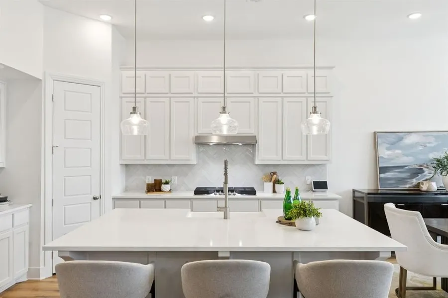 The gourmet kitchen features a large island, two kitchen pantries, and clear sightlines to the living and dining areas. The spacious primary suite showcases a charming bay window and a spa-like bath with a separate freestanding tub and shower. With an entertainment room, 4 bedrooms and 3.5 baths, the thoughtful floor plan includes a private en-suite guest room ideal for visitors or in-laws.