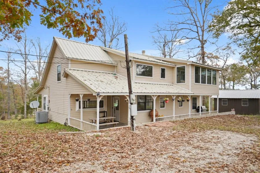 Escape to paradise with this expansive 4.39-acre property in the serene Sugar Hills subdivision, just north of Livingston, TX. The property boasts a main two-story house with four bedrooms and two bathrooms, featuring the primary suite upstairs and equipped with fiber optic internet + new appliances including a fridge, washer, dryer, dishwasher, and water heater, all under a sturdy metal roof. Adjacent, the guest house offers two upstairs bedrooms and a large living area with a kitchen on the first floor, also crowned with a metal roof. Additional amenities include a tool shed and garage, making it perfect for storage or work-from-home setups. Please note, since the home is occupied, provide at least one hour's notice for viewings. All measurements are approximate, so potential buyers should verify them. This property presents a unique opportunity for those desiring security, peace, space, and modern conveniences in a picturesque setting.