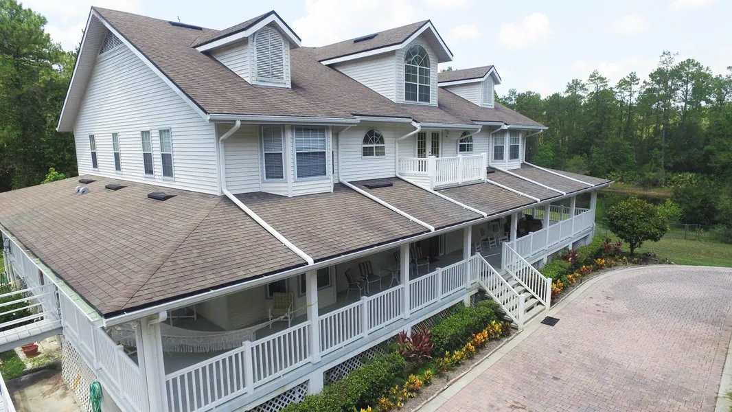 SUMMERFIELD FARMS LODGE-STYLE 7/5 on 18 ACRES. Exceptional inside & out. Wrap-veranda with porch swing, natural wooded acreage of which approximately 3 acres is cleared, circular drive, private pond & volley ball court enhance the outside. Then come on inside and be awed by the fabulous floor plan and features. Grand Great Room is overlooked by gallery style balcony which wraps around the entire 2nd floor. Sunlight spilling in from skylights & vaulted ceilings achieve light airy feel. Master Bedroom Suite, huge Game Room, Formal Dining Room, enormous Great Room, Office and well equipped Kitchen all on lower level. 6 Bedrooms (with 1 bath for every 2 bedrooms) and a study are all nicely arranged off the wide upper gallery. All beautiful woods, tiles, cabinetry, windows and doors have been used. 3 car detached garage. This home is superbly designed.