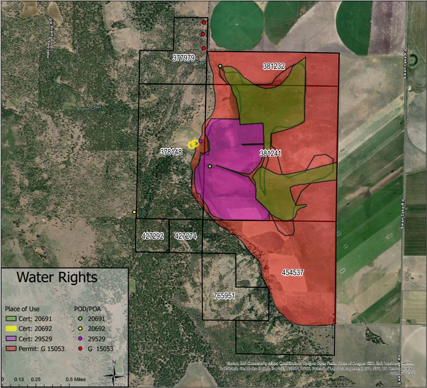 The ranch holds two groundwater permits allowing for three wells; only one well has been developed, producing approximately 500 GPM through an 18 mainline that irrigates the pasture ground. This permit has been extended until 2036, providing an opportunity to develop two additional wells.