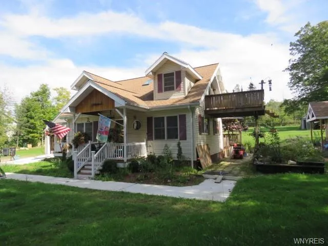 2 acres of property with 200 feet of frontage on a quiet Country Road. East Aurora Schools. Around the block from the Waldorf School. 3 bedrooms & 3 full baths. New windows throughout. Vinyl sided. Newer roof. Huge Deck on the rear of the house w/ a covered Gazebo. Hot Tub. Living Room. Family Room w/ wood stove opens to deck. Formal dining room. Finished basement w/ laundry and room for a Pool Table. Full bath in basement. One bedroom down. 2 bedrooms and a bath upstairs. Seller has just rebuilt the attached garage. New concrete floor, New overhead garage door, plus a two new man doors. New window overlooking the yard in an unfinished room, ready for you to turn into an office or hobby shop, Master bedroom has upper deck for morning coffee or a glass of wine watching the Sunsets. 3 skylights. Nice front porch. Yard has a firepit. Plenty of flat level lawn for Ball Games. Newer shed near the house w/ overhead door for your toys. Chicken House & enclosed run. Country Living at its best. Public water, Natural Gas multi-zone hot water baseboard heat. Appliances can stay. Washer & Dryer too! Open House, Sunday October 17, 2021, 1-3 PM. No Showings until October 1, 2021 as per owner.