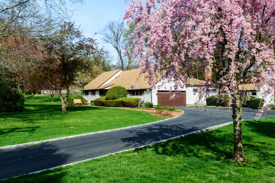 Charming Flower Hill Gem. This beautifully appointed, Farm Ranch includes 5-bedrooms 3-baths, open layout, nestled among mature flowering trees and plants on lush one-acre property. Both Formal living room, with built-in buffet and Den with beautiful millwork and sliders to the deck, enjoy wood burning fireplaces. Custom Eat-in-Kitchen has granite countertops, an oversized center island and access to backyard deck, which creates ideal space for entertaining. Skylights and expansive windows fill the home with natural light, in addition to the warmth of wood floors. With two en-suite primary bedrooms, chose between upstairs or main level, both with outfitted closets. Full basement includes a playroom, exercise room, large cedar closet, laundry and tons of storage. Includes 2-car garage, alarm system, in-ground sprinklers, CAC. This home is meticulously maintained and move-in ready. Convenient to the vibrant Village of Huntington with all the amenities. Please park on same side of street or in driveway. Photo ID required if not accompanied by Agent.
