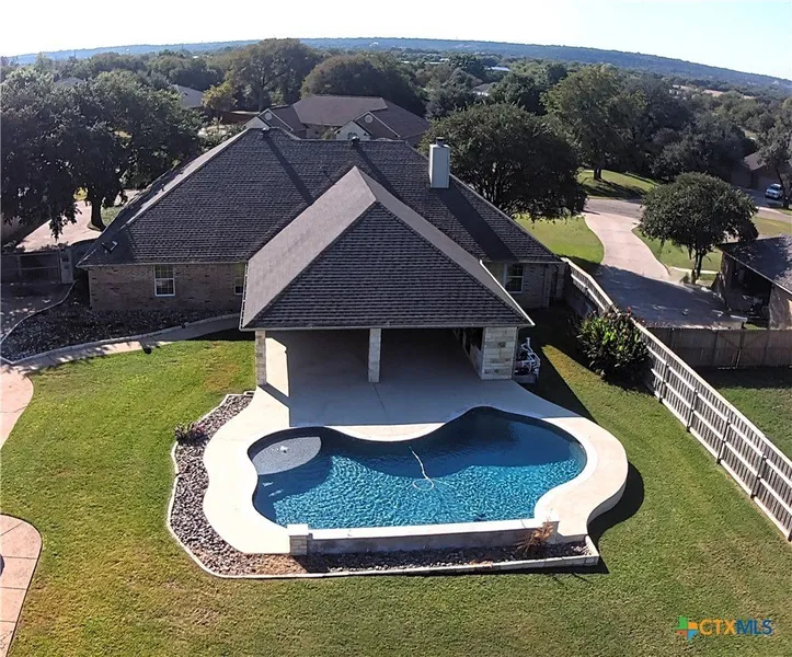 Welcome to Spring Meadow Estates in Belton! Located at 192 Spring Meadow Lane, you'll find a meticulously maintained 4-bedroom, 2-bath home with a Gunite inground pool, a detached garage with living space, and approximately .66 acres of land that offers exceptional versatility. After stepping into your inviting foyer, you'll quickly notice the elegant ceramic tile flooring that leads into a spacious living room featuring tray ceilings, recessed lighting, crown molding, and a stone/tile fireplace. The open kitchen is equipped with custom cabinetry, granite countertops, and a stone breakfast bar, offering both style and functionality. Enjoy meals in the formal dining room with wood flooring or the casual breakfast area. Just off the living room, it will be easy to notice the custom French doors that open to a private home office or study, ideal for remote work. The tranquil primary suite features tray ceilings, recessed lighting, crown molding, and a spacious ensuite bath complete with a garden tub, separate shower, double vanity, and private commode area. Multiple walk-in closets provide ample storage. Three additional bedrooms offer generous space, high ceilings, recessed lighting, and double-door closets. Separate HVAC and hot water systems serve each side of the house, ensuring comfort and efficiency. Outdoors, enjoy your own private inground pool, covered back patio, and outdoor kitchen-perfect for entertaining or unwinding. The rear of the yard is equipped with electricity and water, making it a blank canvas. Adding incredible value is the detached two-car garage featuring approximately 400 sq. ft. of finished living space and a full third bath, making it ideal for a guest suite, game room, gym, or home studio. Conveniently located with quick access to Belton Lake, Stillhouse Hollow Lake, I-35, I-14, and BISD schools, this home offers peaceful living without sacrificing accessibility. Don't miss this exceptional property-call me today for your private showing.