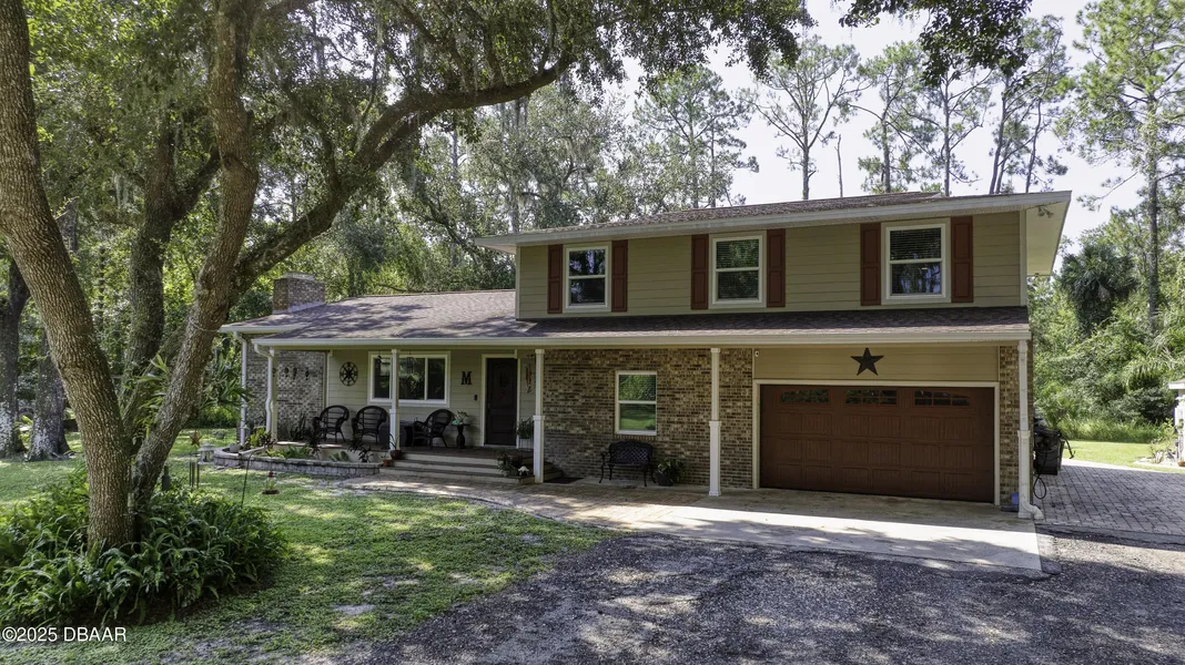 Behind a private gated entry lies a rare opportunity to own a secluded country estate right in the heart of Port Orange. Set on 5 pristine acres, this 3-bedroom, 2.5-bathroom home offers the perfect blend of privacy, comfort, and endless lifestyle possibilities. Inside, you'll find a warm and inviting living room with a fireplace, an office space for working from home, and a spacious family room that can easily be converted into a fourth bedroom if desired. The heart of the home is the gorgeous kitchen, featuring stainless steel appliances, high-end granite countertops, abundant cabinetry, and a dining area that flows seamlessly for entertaining. A 2-car garage provides convenience and storage.