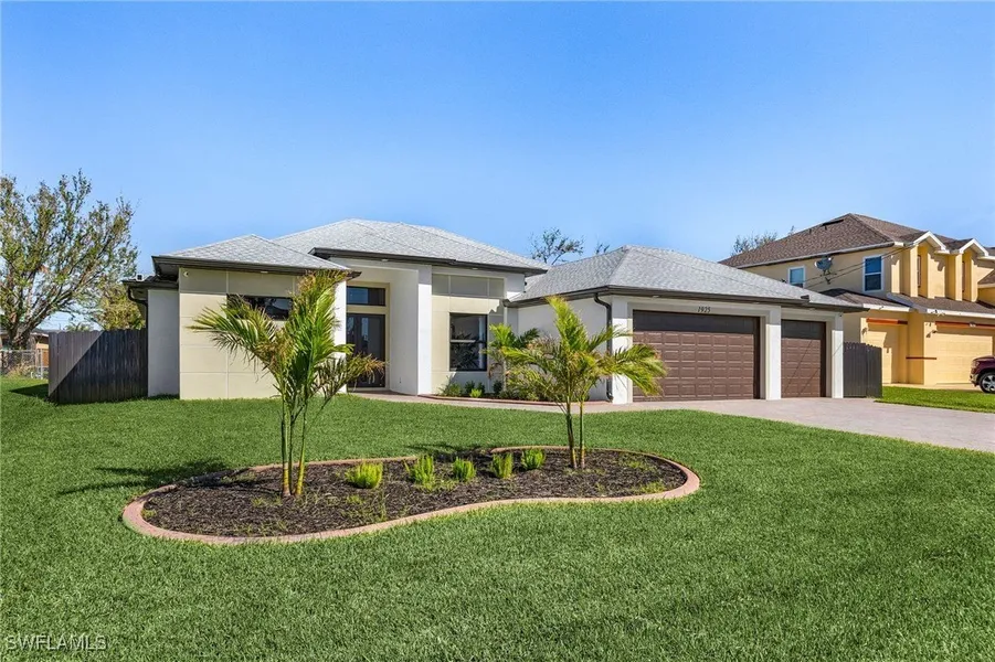 NO FLOOD INSURANCE REQUIRED. The moment you approach this stunning home, the pride of ownership is immediately evident. A newer build that has been meticulously cared for, this property boasts a beautifully landscaped and fenced yard, and a spacious 3-car garage with a paved driveway. Step through the elegant double glass doors and be greeted by soaring vaulted ceilings in the open-concept great room. The heart of the home, the kitchen, seamlessly flows into the great room and features a large center island with sleek quartz countertops and plenty of seating, perfect for entertaining. Adjacent to the kitchen, the dining area offers additional space for gatherings, enhancing the home's overall functionality and style. Designed with a split bedroom floor plan, the primary suite offers privacy on one end of the home, complete with a grand en-suite bathroom that includes a luxurious slipper tub, a beautifully tiled shower, and double vanities. The additional bedrooms are generously sized and thoughtfully scattered throughout the home, with a well-appointed bathroom conveniently located nearby. Step outside and experience your own private oasis-enjoy the tranquil fenced yard, a large lanai with an outdoor food prep space, and a refreshing heated swimming pool, ideal for relaxation and entertainment. This home is currently an active Airbnb, offering a turnkey opportunity for buyers who wish to continue this successful rental venture. All future bookings can be seamlessly transferred to the new owners if desired. Don't miss out on this exceptional home-schedule your appointment today to see this beauty in person! *VETERAN FRIENDLY*