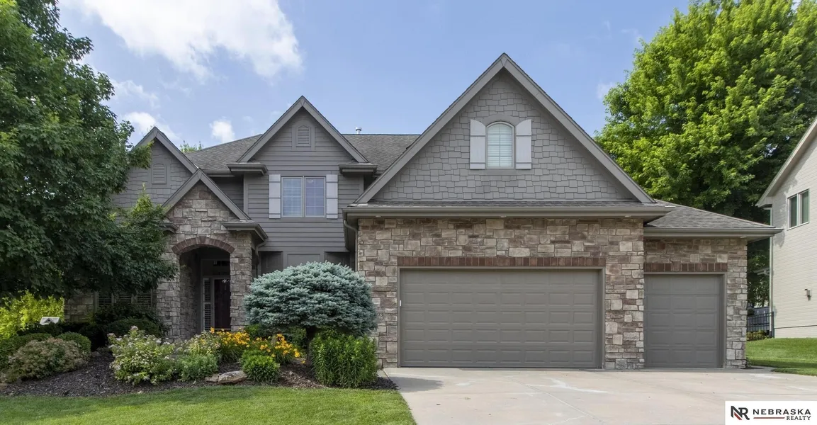 Kristy Bruck, M: 402-301-4880, , - Welcome to this gorgeous 2-story retreat featuring a private, park-like backyard with lush landscaping, mature trees, a tranquil water feature, and plenty of space to relax or entertain—complete with patio, pergola, and fire pit. Inside, the gourmet kitchen is a chef’s dream, offering an expansive island, walk-in pantry, hearth room, and eat-in area. Spacious bedrooms each include walk-in closets and attached baths. The luxurious primary suite boasts an enormous spa-like bathroom and a custom walk-in closet with built-ins. The finished lower level includes a 5th bedroom, full bath, daylight windows, and a stylish bar area—perfect for hosting. Bonus: access to the garage from the basement and large unfinished storage area. This one checks every box! Showings begin at open house Friday 6/27 4-6 PM