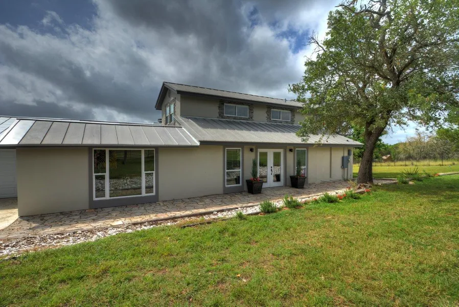 A flagstone patio welcomes the discerning buyer into this custom home on 5 acres with extraordinary views. Bright and airy property w/high ceilings, large windows, and an open floor plan that lets the outside in. The custom kitchen is open to the living area, with an island for serving and a bar that provides extra seating for guests. Spacious/private M/Suite has his/her vanities with granite countertops, jetted tub, tiled shower and walk-in closet. Huge outdoor pavilion/kitchen with seating, negative edge pool, and outdoor fire pit. The large pond that sits alongside the home adds to the beauty of this property. The modern feel of this home, with the beautiful color choices, makes this a home that you must see to appreciate.
