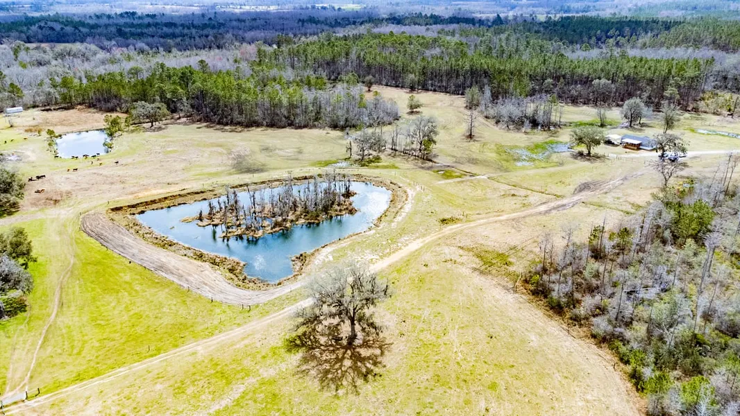 The farm is fenced and crossfenced with a designated hay field. Nearly 130 acres of the property is in maintained pasture. Two ponds totalling approximately 2 acres have been built on the property. The rest of the land is in a mixture of upland natural pine timber and bottomland cypress. The current owner uses the woods as his hunting area, taking advantage of Madison County's strong wildlife populations.