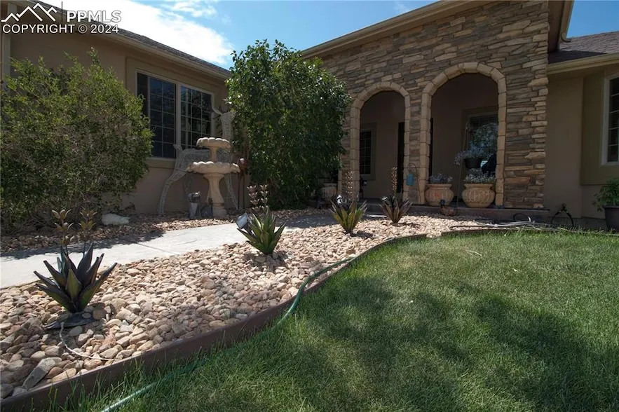 Amazing property in Top Rail Ranch Estates! 5 bedrooms, 3 bath stucco w/ stone accents. This rancher has a full walkout basement, attached, finished 3 car garage & huge 30x50 workshop! Shop has tandem door setup. Fabulous kitchen w/ granite countertops, built in spice and plate racks, some cabinets w/ pull outs, adjacent pantry, breakfast bar, beautiful cabinets, and crown molding! Dining room has a walk out to the upper covered back deck to enjoy the spectacular views! Gorgeous suite w/ a gas fireplace, walk in closet and adjoining 5-piece bath featuring a walk-in shower and jetted tub! Laundry room w/ mud sink and storage. There is an 8x17 covered concrete porch in the front great for a 2nd entrance to a bed/ office for a home business. The basement has 9.5ft ceilings, pellet stove, office, 2 additional bedrooms and a full bath. This owner has finished the backyard retreat with some fabulous features including a calming waterfall, Wellis hot tub, artificial turf, all enclosed with a nice privacy fence. Great corner lot w/ an asphalt driveway. Seller has also done a lot of landscaping on the property and has a drip setup on the backyard trees. Big bonus this property backs up to greenspace! New laminate flooring and expansive window added in the main living room in 2024.