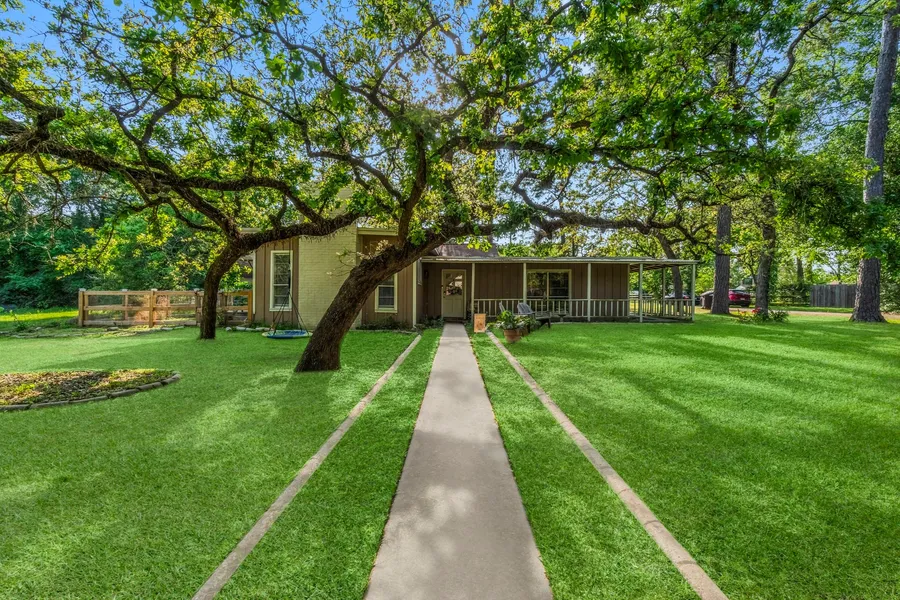 Beautifully updated 3-bedroom, 2-bath home on a spacious corner lot in the sought-after Magnolia ISD. Sets on almost a half acre! This charming residence features a welcoming foyer, a bright, open-concept kitchen with granite countertops, a large island, and newer appliances. Enjoy cozy evenings by the wood-burning fireplace in the living room. The master suite is generously sized with a sitting area and a stylish bath featuring double sinks and a large walk-in shower. Two sizable secondary bedrooms share a convenient jack-and-jill bathroom. Outdoors, find a 25’x16’ workshop with its own electric meter, a cozy fire pit, fenced back yard, large storage shed, and expansive covered patios perfect for entertaining. This property is made up of 2 LOTS, can add additional home. The property is nestled in a community with a lake, park, clubhouse, and basketball court. With low HOA fees, low taxes, and no floodplain worries, this home is an incredible find. Schedule your private tour today!