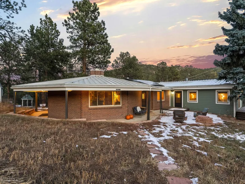 This mountain gem of a property is nestled on a private 1.5+ sundrenched acres. Lovingly cared for this updated ranch style home combines a chic vibe with functionality and a convenient location for the ultimate in Colorado living. The original custom stone fireplace serves as a focal point to the main areas, while hardwood floors and new paint throughout create a warmth to the home. The spacious primary suite offers architectural details including vaulted ceilings with wood beams, brick accent wall, and wood burning stove. Sliding glass doors open to the private balcony and the current 5-piece bathroom and walk-in closet complete this relaxing space. Two additional secondary bedrooms, office and full bathroom on the main level complete the functionality of the floorplan. In the lower level, one will find an additional 638 sf, just waiting to be finished off and customized to the new owners needs. Outside, the green house, large storage shed, chicken coop, gazebo, generator and south facing driveway all add to this incredible property. Located just minutes from Hwy 285 but with all the privacy and serenity of mountain living, this is truly an exceptional opportunity.
