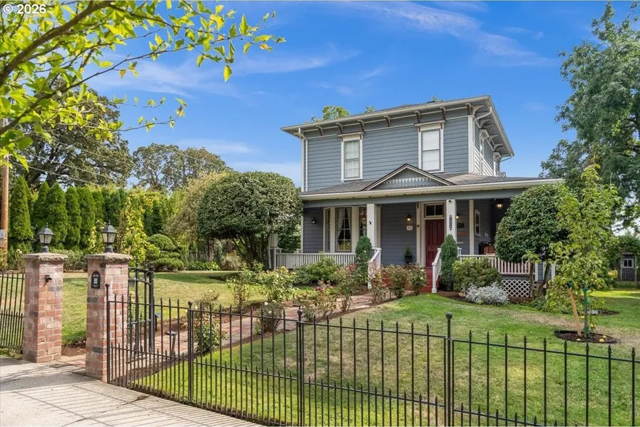NEW YEAR, New Home! The Grande Dame of Forest Grove is celebrating its 150th year. In the heart of Oregon's wine country, just 30 minutes from downtown Portland, stands the Historic IL Smith House-an Italianate beauty built in 1876 and proudly registered on the Oregon Historic Sites Register. Single family home that can convert to multi-generational living, multi-family or rental income. The main home welcomes you with its wrap-around porch, original millwork, built-ins, and a sweeping grand staircase. Historic details abound, from the spacious wood-burning fireplace to the intricate craftsmanship throughout, while modern updates echo a vintage elegance. Two clawfoot soaking tubs, generous closets and storage, and a gourmet kitchen featuring a striking island crafted from an 1876 standard piano create a home that is both functional and unforgettable. Attached is the Original Carriage House, now a fully ADA-compliant ADU, offering versatility for family, guests, or income potential. With its own entrance, spacious kitchen, elevator, two bedrooms, ADA bath, and plentiful storage, it provides comfort and accessibility without compromise. The entire house has been re-plumbed and re-wired for today's needs. Step outside and the grounds feel like a private sanctuary-lush lawns, fruit trees, grape arbor, and extensive gardens designed for beauty and purpose. Lawns and gardens are equipped with sprinklers throughout for effortless care. A pollinator-friendly bee garden, matching garden shed, and chicken coop bring the landscape to life, while a newer 10-person saltwater hot tub invites relaxation. For modern convenience, the home is fully wired with CAT 6 (10GBPS), blending 19th-century grandeur with 21st-century technology. Don't miss the local historic Downtown Forest Grove, parks and walking paths, all within walking distance. The IL Smith House is more than a home-it is a living piece of history, ready to welcome its next steward.