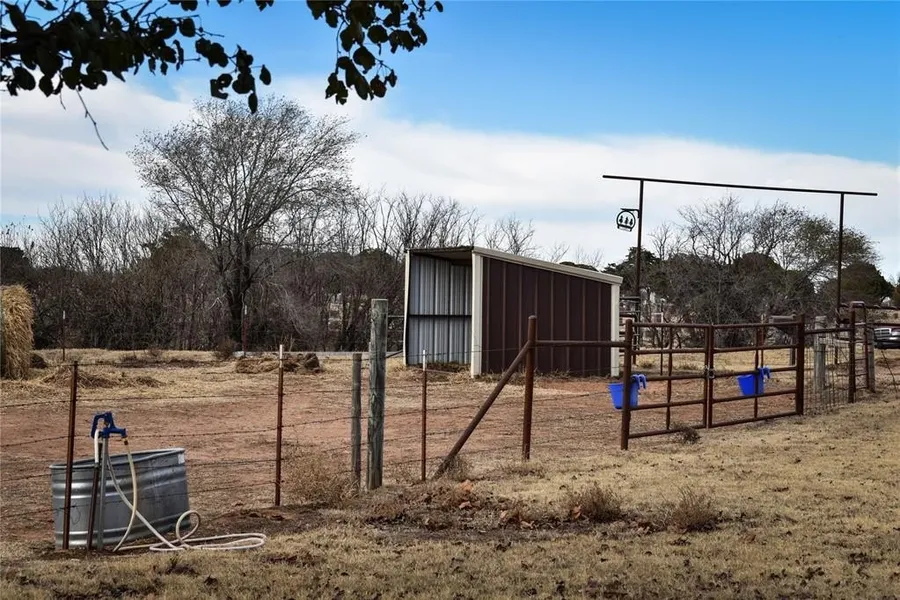 Let's talk about convenience and practicality of this amazing property, ESPECIALLY if you are an animal lover. This beautiful rock home is perfectly situated just outside of city limits on almost 4 acres (mol) but seconds from downtown Mangum! Completely fenced property with not 1 BUT 2 lean to's on the property! With a long, graveled driveway separating the pastures, it is already equipped with a 9'x 13' lean to in the South pasture with water supply close by and a 15' X 48' lean to in the North pasture with a power outlet, lights and a freeze proof hydrant next to it for your convenience. Perfect if you are looking at adding some horses or other farm animals! In addition to the outside is a 50 amp electrical pole hookup in the North field near the fence to park that RV or camper for when it's time to get away on a much-needed vacation. Recently added was a 6ft chain link fence to the backyard, tall enough to keep those mini donkeys or larger breed animals at bay. Enough about the outside amenities, let's talk about the inside. The owners have taken great pride and put ALOT of time and energy into updating the inside, so you don't have to. With fresh paint throughout the entire home, freshly painted cabinets in the kitchen and since ownership, they have painted the guest bath and most of the cabinets throughout to a modern-like feel. Wood blinds throughout, Laminate flooring added in 3 of the rooms and the original hardwood floors in the living room and hallway, this 3-bedroom home with an enclosed sunroom/bonus room just off the living room to be used however you see fit. The home is on public utilities with a Septic tank -Newer appliances to include the fridge, dishwasher and gas stove and 2 water heaters (one for just the bathrooms and one for the kitchen and laundry so you can take those long showers or do laundry and dishes without the fear of running out of water. Call today to see more in person!