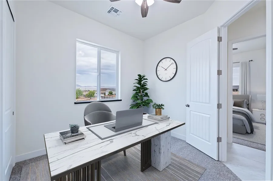 Welcome to this stunning 4 bed, 3 bath home nestled within the gated community of The Borgata on Mountain View. This community offers an environment with sidewalks and streetlights, perfect for evening strolls or morning jogs. Step inside the homes elegant, steel French door entrance and be greeted by the spacious and well-designed interior. The open concept floor plan creates a seamless flow throughout the home, making it perfect for entertaining or enjoying quality time with loved ones. The well-appointed kitchen features stainless steel appliances, granite countertops, island, shaker-style cabinets with soft close doors/drawers, and separate pantry. The open living area is bathed in natural light, creating a warm and inviting atmosphere for gatherings or quiet evenings spent relaxing. The tile flooring adds to the functionality of this home, while the 10' high ceilings and 8' interior doors create an airy and expansive atmosphere. The primary bedroom suite is a true retreat, boasting separate vanities with granite countertops and a spacious, walk-in closet. Unwind in the walk-in, snail-style shower or indulge in a long soak in the large, soaking tub. The attention to detail and quality craftsmanship are evident throughout, making this space a sanctuary of comfort and relaxation. A second bedroom suite has a tub/shower combo, a granite top vanity, and walk-in closet creating a comfortable, private space for guests. Two additional bedrooms complete the picture, each offering versatility. The home also has a laundry room with cabinets, a wash sink, & a folding area, making laundry day a breeze. Don't forget the 3-car garage with a boat-deep bay measuring approximately 34 ft., providing plenty of room for all your vehicles and toys. The lot provides plenty of space for allowing you to create your own private oasis. The low maintenance exterior ensures that more time can be spent on enjoyment & relaxation with less time on upkeep. The Borgata on Mountain View offers a desirable location with easy access to shopping, restaurants, golf, parks, & major highways. Don't miss the opportunity to make this incredible home your own. Schedule a showing today!