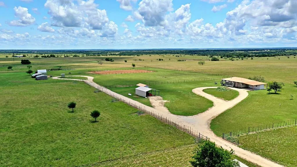 Ranch Vacation Home on 55+ Acres!! You will love how much this ranch property has to offer! It currently features a small energy efficient getaway home with 2 bedrooms/ 1 full bath with dual vanities and a large walk-in shower, and a half bath for guest, a full kitchen with granite counters and stainless island for preparing meals, an oversized closet with built-in that makes a great office nook, solar panels, wrap around porch for relaxing and enjoying the beautiful views, an attached two car carport, extra storage room that could be a small workshop, a pole barn, detached storage building with electric and bathroom that makes a great office, horse shed, 3 horse stalls, horse arena, round pen, and more! This property sits on 55 acres and is completely fenced and cross fenced. It has the perfect location to build your dream home or keep it as a weekend getaway ranch! Endless possibilities and close to McGregor!