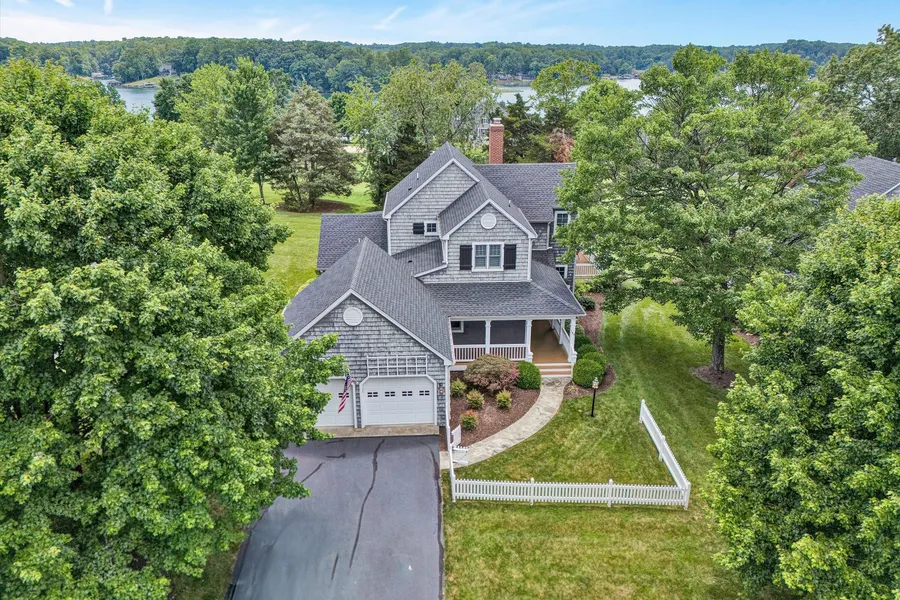 This home offers country club living at its finest with a wraparound porch overlooking #12 fairway and green, including water and mountain views. Entry level has a primary bedroom, 1 and 1/2 baths, den, office, large family room with wood fireplace (can be converted to propane). The layout is perfect. Vaulted ceiling with clerestory windows for light. The upper level has two large bedrooms and a full bath with double sinks. Dual zone heating and cooling. Close short walk or golf cart ride to boat slip 6 and a PWC lift in the Golfers Crossing Community Boat Dock and the Country Club where you can enjoy all of the amenities which include golf, tennis, pickle ball, fitness room, pool, equestrian center and dining.