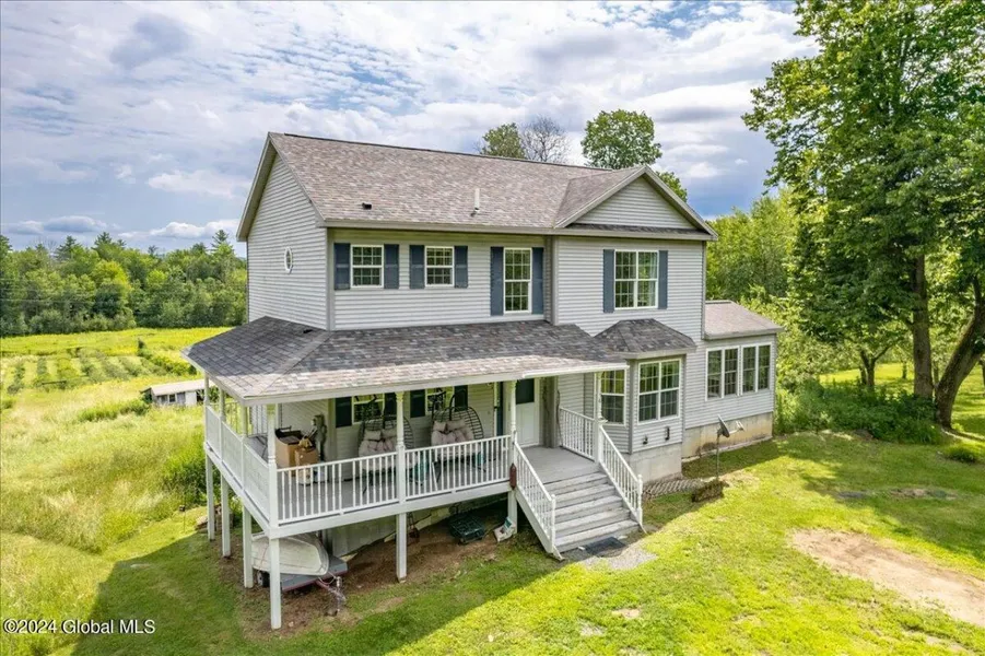 Welcome to your dream farmhouse! Located at the Foothills of the Adirondack Mountains nestled on nearly 60 acres. Close proximity to the Great Sacandaga Lake, offering 10ft permit access to the lake. This property offers breathtaking mountain views and this farm features an orchard with 60 Macintosh trees, 250 blueberry bushes, two ponds with gorgeous natural plantation, livestock paddocks and shelters, meadows adorned with wildflowers, and woodlands with various beautiful tree species. Inside, spacious rooms are filled with natural light, while the sitting room offers peaceful terrain views. The cozy patio and deck are perfect for sunset watching. Over 3340 sqft of living space with 4 bedrooms and 2.5 baths. Brand new propane furnace or choice to heat with outdoor wood burning furnace.