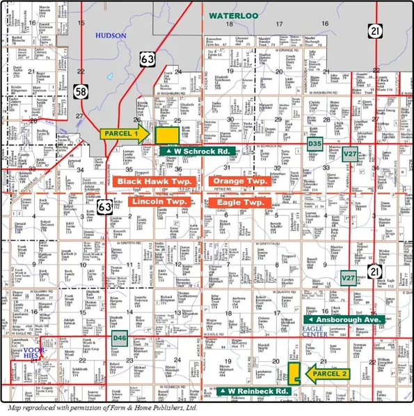 196.23 acres, m/l, located near Hudson/Waterloo will be offered in 2 parcels via the Choice and Privilege method of sale. See "Method of Sale".