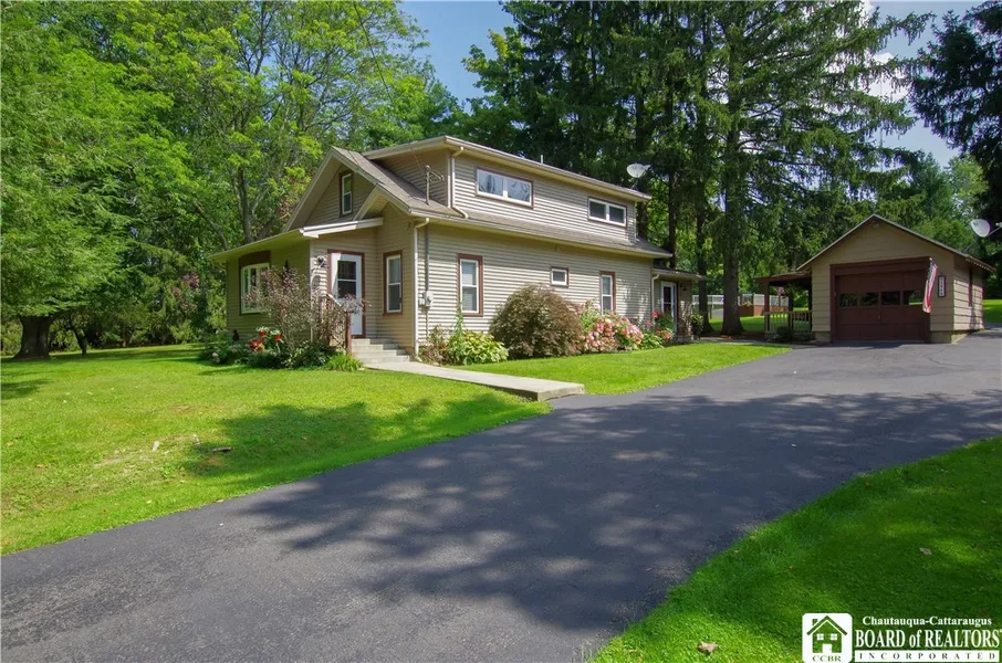 The old adage "county living in the city" could not be more fitting! Imagine having 5 acres to play, hike, entertain, garden and also being under a mile to schools, shopping, dining and commerce. Convenience with solitude. The grounds blend mature flora, open space and wooded acres. Enjoy a dip on those hot summer days in the pool as little ones entertain themselves in the playhouse or on the playground. Gather for a bbq on the spacious deck or read a book under the covered patio. It's not easy to go indoors but when it's time you'll feel at home. The eat in kitchen is loaded with solid surface counters and cabinets(slide out pantries too!) A formal dining space connects the living room and kitchen creating a great open space for gatherings. Stacked stones surround the wood stove and built-in shelving adorn the living room. Main floor includes bedroom, full bath and den as well. The second level is home to 2 bedrooms and full bath open space between them to use as needed. The detached garage includes a 2nd story "Fan Cave", workshop, electric and water. Brand new septic, central air and furnace are added bonuses. This home fits many lifestyles and should be at the top of your list!