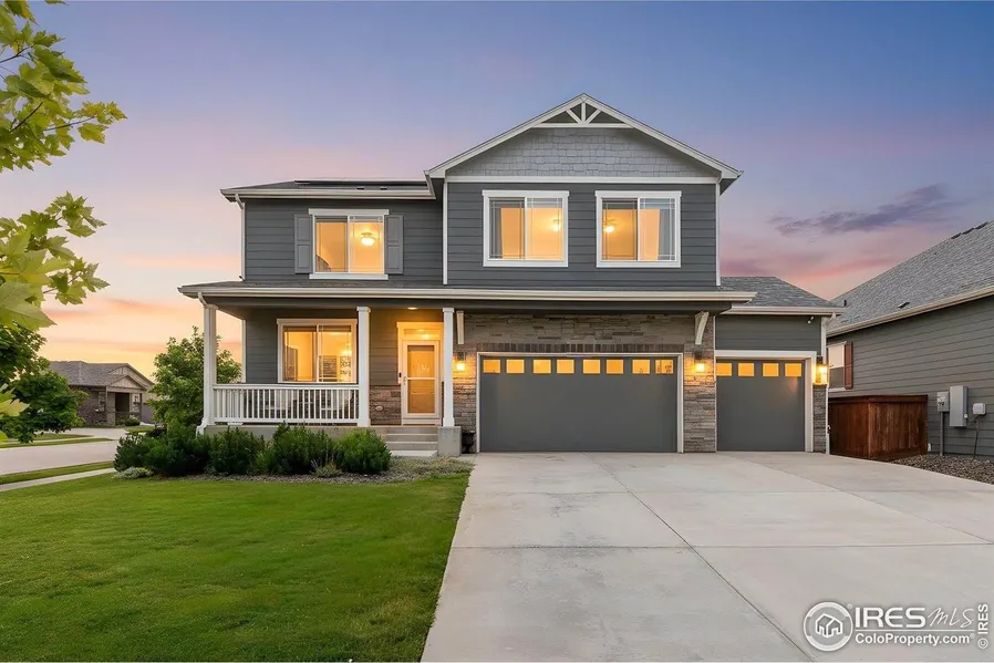 HUGE price reduction! One of RainDance's best priced homes plus a 1% Seller Paid Concession to use toward an interest rate buy-down or closing costs! This stunning two-story home sits on a corner lot across from a charming neighborhood park and showcases beautiful mountain views from the front porch & primary suite. The bright, open floor plan features rich wood floors, a cozy gas fireplace, and abundant natural light. The main level includes a private office (or 5th bedroom) and a gourmet kitchen with gas range, large walk-in pantry, and plenty of space for cooking and entertaining. Upstairs, you'll find four spacious bedrooms, including a large primary suite with mountain views and dual walk-in closets, plus a versatile loft ideal for a secondary living area or recreation space. Additional highlights include OWNED solar panels for energy efficiency and low electric bills and a backyard with extended concrete patio perfect for grilling and gatherings. At RainDance, you're not just buying a home-you're embracing a lifestyle. Enjoy community amenities including a 1.5-acre water park w/ lazy river, 15 miles of trails, orchards and fishing ponds, multiple parks, the Grain House restaurant, Ziggi's coffee shop, RainDance National Golf Course, and Hoedown Hill for your skiing, tubing, and summer concerts!