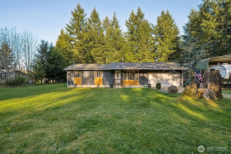 Back on market~ Welcome to the country! Imagine your life here in a space where you can have your mini farm and bring all your toys. Enjoy the main-level living in this open-concept home with hardwood floors, newer appliances, and breakfast bar. A cozy wood stove for chilly nights. Primary bedroom has a full bath, newer exterior paint, roof and gutters, 500+ square foot attached garage plus RV carport with power and water. Cool off in the summer with the above ground pool. You will also find a work shed with power and covered back patio awaiting all your BBQ's. All of this on a fully-fenced acre with no HOA. Save on utilities with your private well and septic system~