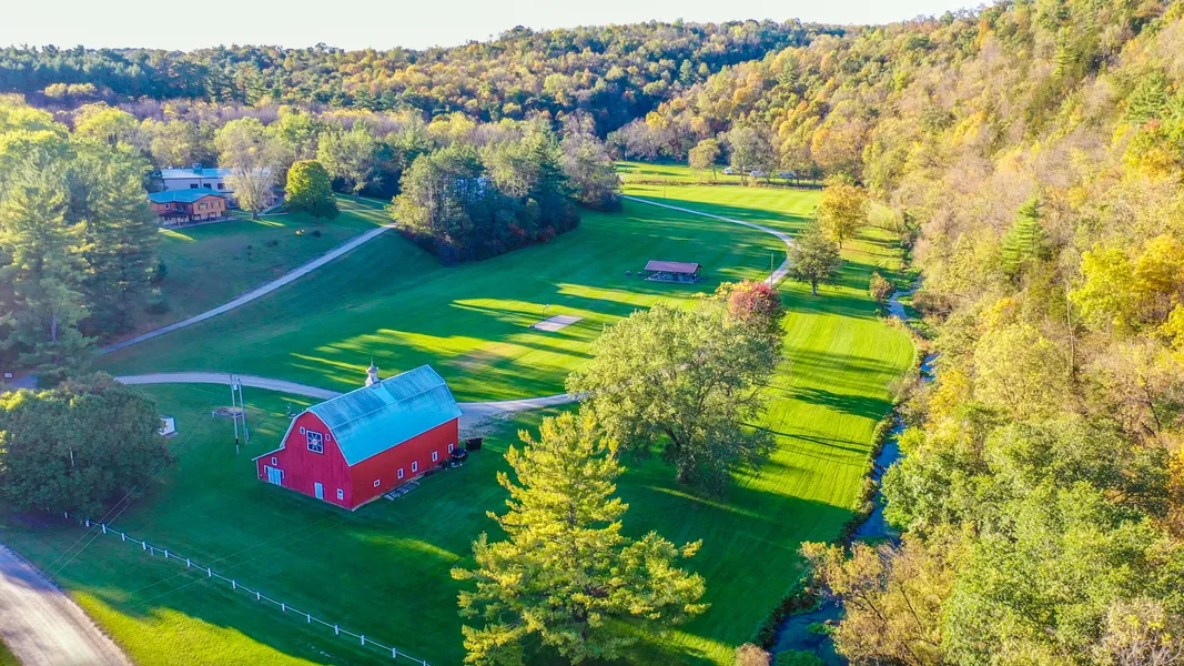This extraordinary property is situated in the breathtaking Winnebago Valley, renowned for its dramatic limestone bluffs, deep river valleys, and spectacular natural scenerya landscape untouched by the last glaciation. The location offers seclusion and natural beauty while maintaining excellent accessibility: a short drive to the charming town of Caledonia, 38 minutes to Lacrosse, WI, 45 minutes to Decorah, IA, and 1 hour and 30 minutes to Rochester, MN.