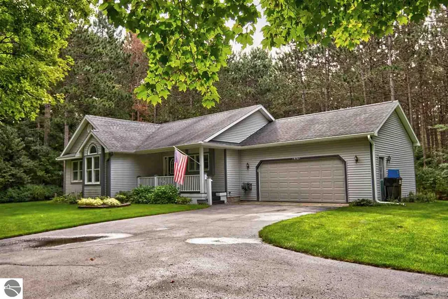This wonderful home is turn-key and ready to host your memories! Located in a cul-de-sac development just on the edge of the charming Village of Lake Ann, this home is removed from the hustle and bustle yet is still a quick drive to Traverse City. Nestled on a landscaped 1-acre lot with a combination of lush green lawn (with irrigation!) and low-maintenance native flora and fauna beneath towering pines, highlights of the home include an open-plan main level with a gas fireplace and cathedral ceilings in the living room, overlooking the island kitchen and dining area. The primary suite features a private bath, walk-in closet, and French doors out to the expansive deck. You'll find flexible space in the finished lower level, with a nook that could easily become a kitchenette or wet bar. Sit and relax on the covered front porch or on the generously-sized back deck, complete with a retractable awning. New furnace in 2019. Welcome home!