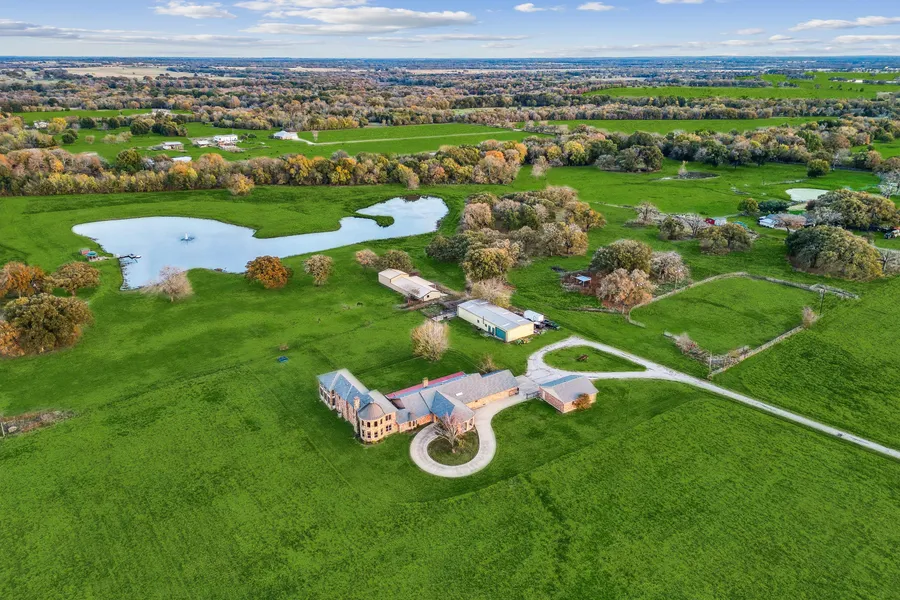 This incredible 45 ACRE Horse Ranch Only 50 min East of Downtown Dallas inspires a lifestyle of private luxury w-a sense of freedom away from the bustle of the city! Seamless indoor & outdoor entertaining! Inside has custom details throughout w-inviting spaces equally suited for the flow of everyday life to entertaining on a grand scale! Living w-cedar planked ceilings, Formal Dining, Epicurean Kitchen, 2nd Living + Lg Bedrooms! Unmatched 2000SF Primary Suite, built in 2005, is a retreat of its own w-wet bar, FP, sitting area, dual WIC, spa bath w-heated floor, staircase leads to an Exercise Rm + Study! Enjoy Amazing LAKE VIEWS from the balcony, sunrm + screened rm off the Master! Guest Quarters w-Living, Kitchen, Dining, full bath + Bedroom. 5 car Gar! Amazing Equestrian Facilities include a workshop w-2 roll up doors, lift, cattle chutes w-scale, hay barn w-7 stalls, feed & tack room, 12x40 covered run, grass arena w-roping chute, cross fenced, stocked lake w-dock, gazebo & fountain!