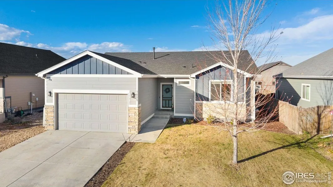 This charming single-owner home in Colony Pointe shines with thoughtful upgrades and a bright, move-in ready feel that makes everyday living a breeze! As you step inside your new home, you are welcomed by an open-concept main living area featuring vaulted ceilings and upgraded LVP flooring that brings a clean, inviting feel to the space. The adjacent kitchen makes cooking and prepping effortless with stainless steel appliances, granite countertops and tons of prep space, a center island with seating, updated lighting fixtures, and a pantry for organized storage. The primary suite delivers comfort and privacy with a double-vanity ensuite bathroom and a walk-in closet. Two additional bedrooms offer flexible options for guests, hobbies, or workspaces. The full unfinished basement is ready for your vision, with rough-ins already in place, giving you a blank canvas for future expansion. The exterior is beautifully cared for with well-manicured front and back yards complete with an automatic sprinkler system. A large concrete patio with a pergola sets the stage for outdoor relaxing or al fresco dining. The 2-car garage offers ample parking with room for extra storage, and the south-facing driveway allows for convenient snowmelt in winter months. A short walk brings you to Ehrlich Park & Lake, offering walking and biking paths along with the opportunity to fish or kayak in your own neighborhood. The location also gives you access to the Milliken Pool and Athletics Complex, where you'll find plenty of options to stay active or explore new hobbies. Just a short drive to historic downtown Milliken, Windsor, and Greeley, this home offers a peaceful setting with quick access to everything you need. Additional update includes new roof installed in September 2025.