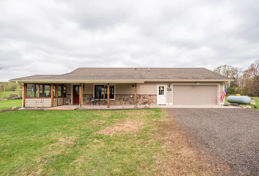 Grand View Small but mighty; this 960 sq ft home has it all! In-floor heating, heated garage, custom built hickory cabinets with granite countertops, spray foam insulation, screened in porch & large walk-in shower, trails, a pond and right on a main ATV trail. All of this on 10 peaceful acres. Dont miss out on your chance to own a low maintenance, one-level, custom home! (*2 nd bedroom is in garage, if removed the garage will have a pull-through option.)