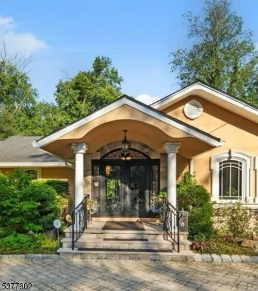 Nestled on nearly half an acre of beautifully landscaped grounds, this meticulously renovated steel-beam constructed ranch offers a seamless blend of quality craftsmanship and thoughtful design. The expansive first floor features a bright and airy layout with Brazilian hardwood floors, radiant heat throughout, a large custom eat-in kitchen with dual fireplaces, and seamless access to the patio through sliding glass doors - perfect for indoor outdoor entertaining. The flexible floorplan includes multiple bedrooms, including a junior suite and a spacious primary suite with a private bath, all complemented by newly updated bathrooms. A striking rod iron railing leads to an upper-level family room and deck, while the full basement includes a cedar closet, laundry area, and access to a two-car garage. Step outside to your own private oasis - the backyard is a serene retreat with lush plantings, mature trees, and a manicured lawn, perfect for relaxing, hosting gatherings, or enjoying peaceful moments surrounded by nature. With new exterior finishes, roof, windows, and more, this home offers turn-key comfort in a prime location, complete with window treatments and washer/dryer included.