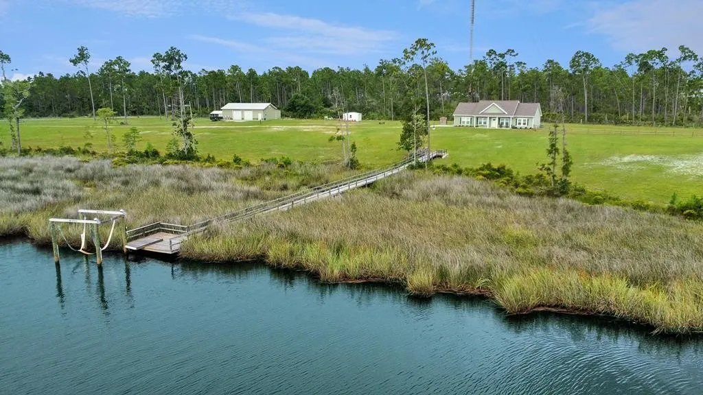 Newly constructed 3-bedroom, 2-bath home is nestled along the banks of scenic Wetappo Creek. This unique property boasts over 6 acres of serene, natural beauty with direct water access, a boat lift, and endless opportunities for outdoor adventure. With the open concept living space, water views are enjoyed from most of the home. The well appointed kitchen offers an island bar, making entertaining a breeze. The double pantries make grocery and countertop appliance storage a no brainer. Guest can enjoy your home without impeding on your personal space with a 1 / 2 bath off the living area. Connect your ice machine inside the oversized laundry space to keep your catch fresh! Each of the bedrooms are of ample size, with water views from the master bed and bath! Fido will never get far, with direct interior access to the rear fenced yard. Store all your gear, extra vehicles and workshop hobbies inside the 12x16 storage building or 52x44+ double garage, with plumbing in place to add a 1 / 2 bath! For the hobby farmer or homesteader, a separate fenced area with chicken coop is ready for your flock and garden dreams. Spend your mornings sipping coffee by the water, and your afternoons boating?just 20 minutes to East Bay for world-class fishing, or head the other way and scoop up scallops in stunning St. Joe Bay. This is more than a home; it's a lifestyle. Don't miss this rare chance to own your own waterfront oasis with room to roam.