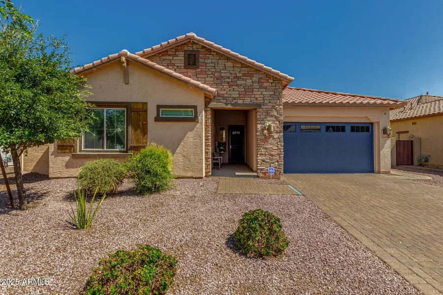 Beautiful 4-bed + den, 2.5-bath home in Remington Heights with great curb appeal, stone accents, and a 3-car tandem garage with paver driveway. Inside features tall ceilings, designer paint, tile flooring throughout, and an open-concept layout filled with natural light. The chef's kitchen offers SS appliances, granite counters, tile backsplash, pantry, and a large island. Den makes a perfect office! Spacious primary suite with dual sinks and walk-in closet with laundry room access. Low-maintenance backyard with synthetic grass, pavers, covered patio, and electric fireplace great for entertaining. A must-see!