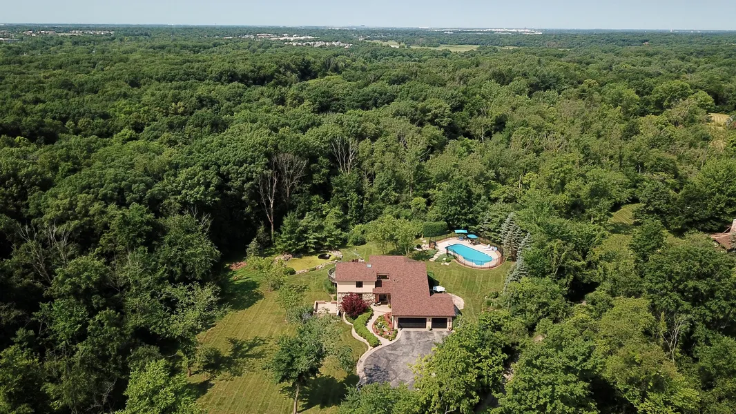 A Beautiful 6.3 Acre Slice of Paradise!! Ideally located with easy access to schools, shopping, Silver Cross hospital, I-355, I-80 and more. This home offers a secluded and private lot amongst plenty of mature trees! You will drive down the long driveway that leads through the gated entry to a resort-like setting. Outstanding yard with tons of trees and amazing inground pool! This property is zoned Estate which will allow for a 5000 square foot outbuilding with county approval. Horses are allowed too! Enter the home and be greeted by an open family room with vaulted ceilings and 2 story stone fireplace for a wood-burning ambiance. Large kitchen with bay window has been updated with granite counter tops, stainless steel appliances that include a Viking oven & Sub-Zero fridge, and pantry closet! Big dining area that leads to the wonderful sunroom that leads to the deck and looks out to your private backyard oasis. Backyard features a large in-ground pool, pond, brick paver patio, and deck that is all enclosed by mature trees! Main level master with walkout to the deck. Main level has a 2nd bedroom that is currently used as an office. Upstairs loft with 2 beds and a full bath. Finished walkout basement offers a 5th bedroom, full bath, 2 big rec rooms, and plenty of storage space! Lower lever plumbed - outside of bathroom on the south wall for gas for a possible future kitchen. Truly a one of a kind property - don't delay!! New Lenox grade schools and Lincoln-Way Central high school. Ventless woodburning stove on main level and basement do not stay.