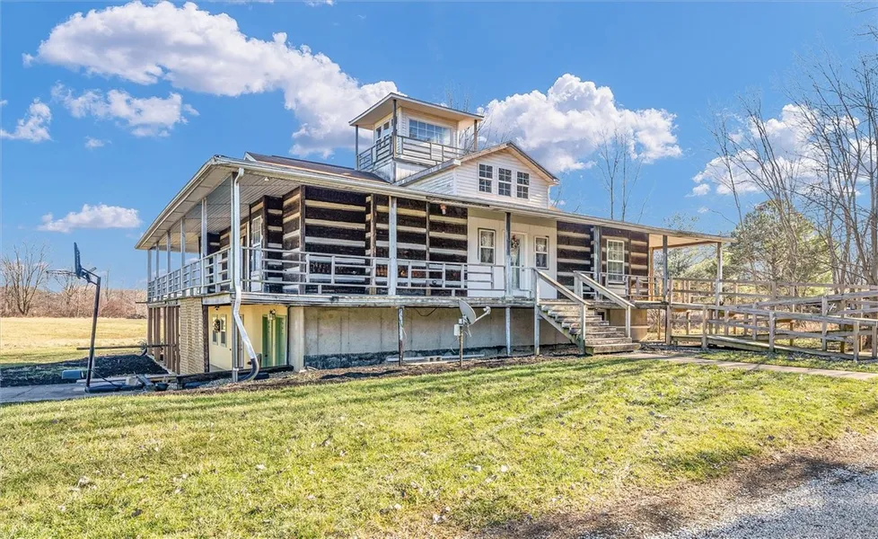 Discover the charm and craftsmanship of this one-of-a-kind custom built home with meticulous attention to detail and an abundance of versatile living space. Nestled on a 1.69+/- acre lot, this property blends timeless log cabin architecture with modern comforts. Constructed in the style of a "Double Dogtrot Log Cabin," the home is comprised with rooms that are connected by a wide central hallway. The Western Hemlock exterior siding was sourced from Tennessee, while the interior walls feature stunning walnut, planed by the owner on his sawmill. The main level features the master suite with cedar walls and private bath, remodeled kitchen, office/library with built-in desk and bookshelves, formal living room, and full guest bath with ceramic tiled shower. Make your way up the custom stairway to the upper level to find three versatile rooms, perfect for additional bedrooms, playroom, or studio. The fully finished walk-out lower level is a self-contained retreat, boasting two bedrooms, additional family room, kitchen, dining area, living room, laundry room and convenient bath with exterior entrance making it ideal for guests or multi-generational living. Adding to its charm, the home showcases exquisite custom details, including hand-carved wood accents and cupola with a miniature wrap-around porch, echoing the wrap-around porch on the main level offering a picturesque "captain's walk" feature. This extraordinary home is a rare find for those seeking a retreat that truly stands apart. Updates as provided by homeowner include:2021~lower level mini split system and new vinyl flooring, main level kitchen remodel (appliances, flooring, island, backsplash, and window above the sink); 2023~septic evaporation pit and lift pump; 2024~master bath flooring, toilet and jetted tub surround, roof on cupola, carpeting on basement stairs and fresh landscaping. Don't miss the opportunity to make this home your own!