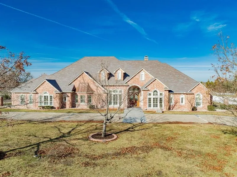 Seller has recent appraisal 200k above list price. Resort-inspired ranch estate designed for living and entertaining, in the gated community of The Oaks of Buffalo Way. A serene oasis with mature trees on a spacious, fenced 1.497 acre lot. With 5,879 Sq Ft of living space, plus a 430 Sq Ft enclosed cabana and 725 Sq Ft bonus suite above the garage, this property offers a combined 8,217 Sq Ft of thoughtfully designed spaces. Inside this estate, is an open layout with soaring 10-16 ft ceilings throughout, encompassing 5 expansive bedrooms, 4 full baths, a shared bath, and a half bath. The family room boasts custom built-in cabinetry, a large Travertine fireplace, and a beautiful coffered and beam ceiling. The kitchen offers a large island, eat in kitchen with a breakfast bar, and a large walk in pantry with custom built-in cabinetry. This true chef's kitchen has a Viking kitchen suite, including a large Viking professional range. Primary suite offers luxurious Italian marble throughout, a large spa tub, massive dual entry walk-in closets with built-ins, as well as a separate fully lined cedar closet with built-ins. Attached to the primary, is a large workout room and a private sauna. Custom upgrades at every turn, from woodwork and surround sound to an 18 carat gold plated sink. The large game room has a wine bar, wet bar, and refrigerator. There is also a separate wine room and a gun safe. Outdoor space includes a large enclosed poolside cabana complete with roll-up doors for seamless indoor-outdoor living along with a half bath, gourmet kitchen, kegerator and built in Viking grill. The pool is 65' x 35' with a diving board, large winding water slide, and an oversized spa accommodating 15 people. The four car, gated garage entry with bonus suite above it. Home updates: Pool Re-plastered and retiled 2025. Garage doors 2025. Updated windows. Da Vinci slate roof 2025. HVAC 2025 in apartment over the garage. Re-paved driveway completed in February 2025.