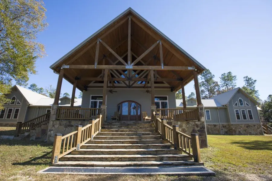 This income producing hunting, recreational, and timber investment with lakefront lodge is an outdoorsman's dream. The large lodge is ideal for personal, commercial, or corporate use. It overlooks a 5 acre stocked fishing lake with pier, with 12 bedrooms, 6 baths, chef's kitchen with stainless commercial grade appliances, commercial ice machine, walk in pantry, 2 laundry rooms with 2 washers/dryers each, master suite with private patio and hot tub, huge great room with stone hearth fireplace, 20 ft bar with beer and wine chillers, game area, 5 zone HVAC, 3 tankless hot water heaters and more... Other improvements include a large equipment shed and workshop with game cleaning area, walk in cooler, and covered parking for 2 RVs. Timber consists of varying ages and classes of well managed longleaf and loblolly pine and mature hardwood. Along with the income potential from the lodge and timber, a portion of the property carries 337 wetland credits with 177 more possible, which have sold for as high as $10,000 each. Conveniently located in central Baldwin County, which is tied for the 8th fastest growing MSA in the U.S. and the fastest growing county in Alabama according to the U.S. Census Bureau, and less than an hour from Mobile, Orange Beach, and Pensacola. Call Clint Flowers, ALC at 855.NLR.LAND for more details.